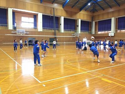 1年の保体です。バレーボールで円陣を組んでパスをしています。↓