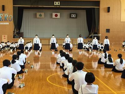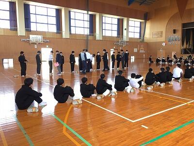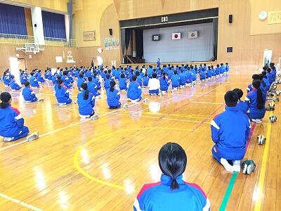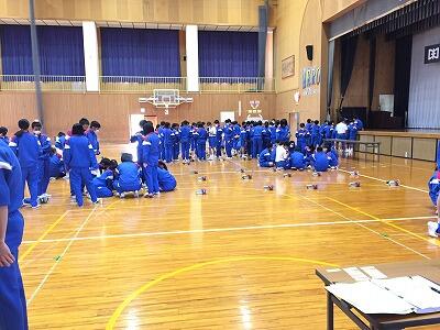 本校から1年生3名、2年生4名が参加しました。白い体操服、青いハーフパンツが本校生徒です。