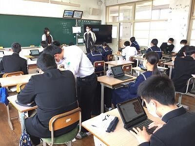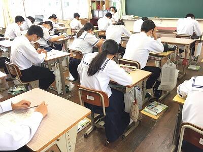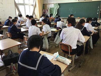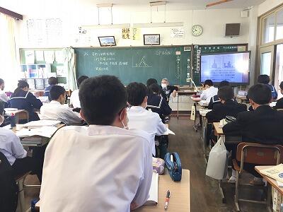 昨日の授業、講話(1年)、高校説明会(2,3年)の様子です。
