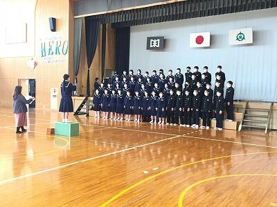 3年生の音楽です。合唱のソプラノパートの練習をしています。↓