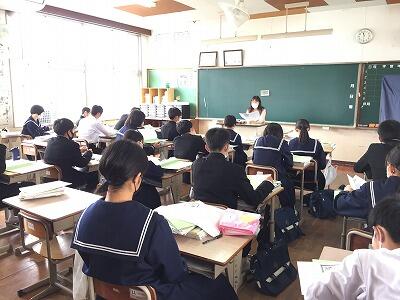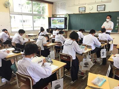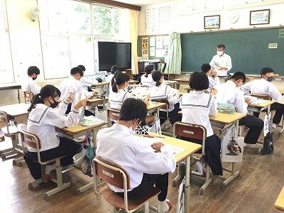 2年生の社会です。テストが返却され、解説を聞いています。↓