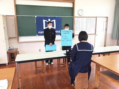 3年生です。面接の練習をしたり、「先輩の声を聞く会」の準備をしたりしています。↓