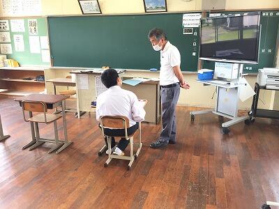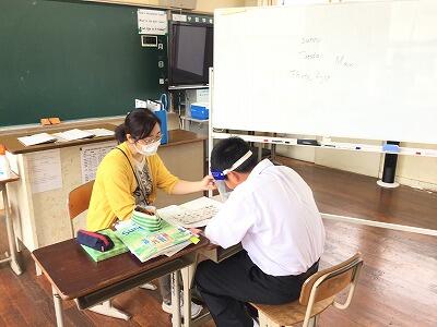 1年生、国語のテストの様子です。補足説明をうけています。↓