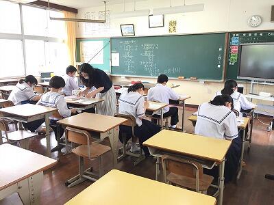 3年生の数学です。少人数指導でそれぞれ問題に取り組んでいます。↓