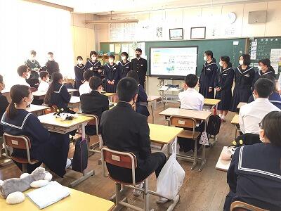 昨日「先輩の声を聞く会」が行われました。3年生が4つのグループに分かれて1,2年生の学級に行き、パワーポイントや黒板を使って、高校や進学の説明、勉強の大切さを伝えてくれました。