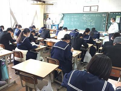 本日は通常の6時間授業(清掃なし)で、帰りの会終了16:40、部活動終了17:30、下校完了17:45です。3年生は県立高校推薦入試があります。入試を受けない3年生は12:00に下校となります。