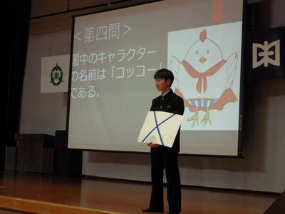 次に第2部は、国光原中学校〇×クイズでした。このクイズは、執行部の皆さんが考え抜いたもののようです。