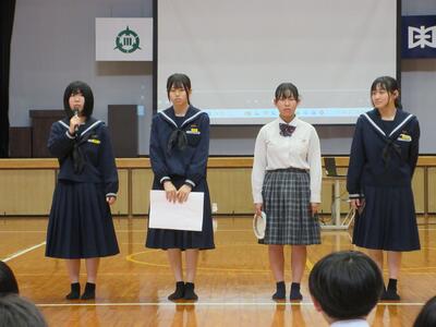 まず、第1部は、生徒会とは?小学校には、「児童会」という組織がなく、中学校入学後、組織の一員として活動することとなります。その意識付けをするために、この第1部が計画されました。