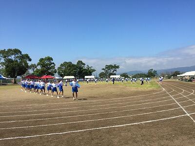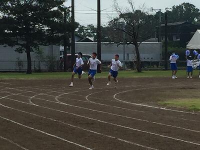 昨日は体育大会予行練習が行われました。朝は小雨まじりの天気でしたが、後に晴れて暑くなりました。どちらの団も競技に応援に全力で頑張っていました。本番の成功のために、良い練習になりました。