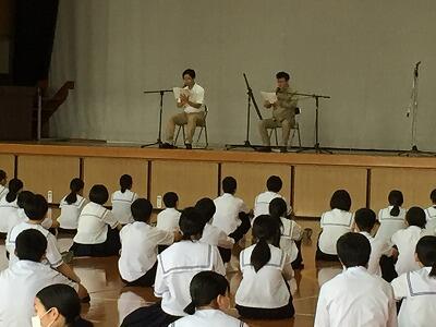 生徒は真剣に鑑賞していました。最後に生徒代表からお礼の言葉を伝えました。