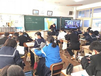 1年の英語です。ALTの先生の話す英語を聞いて意味をとらえています。↓