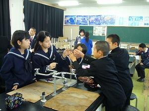 1年C級の理科授業の様子です。今は「力の働き」というところで「バネの伸びとおもりの関係」フックの法則を勉強しています。予想を立て実験し、バネの伸びと力の関係について導き出そうと頑張っていました。