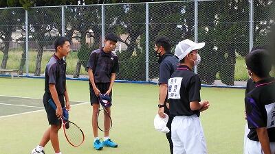 団体は1回戦で高鍋東に2-0で勝利、準決勝は新田に2-1で勝利、決勝は妻に2-0で勝ち、優勝しました。県大会出場です。個人戦は2つのペアが3位となり、こちらも県大会出場です。