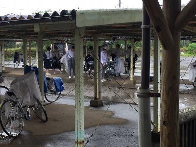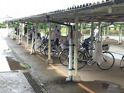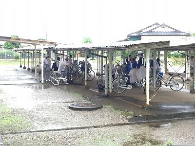 今朝の登校の様子です。雨天時の登校は大変です。