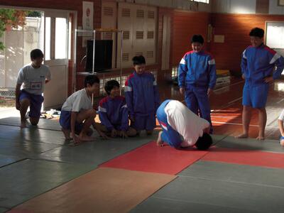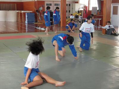 保健体育の授業で、柔道が始まりました。始まる前は、「痛そう!!」とか「難しそう!!」などの声が聞こえてきました。しかし、始めてみると、「カッコイイ」などの声に変わりました。