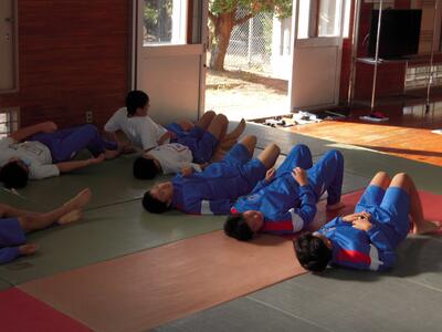 中学校の保健体育では、1年間の中で武道を10時間程度学習することとなっています。1年生は、どのような学習をしているのだろうと思い、武道場を覗いてみました。
