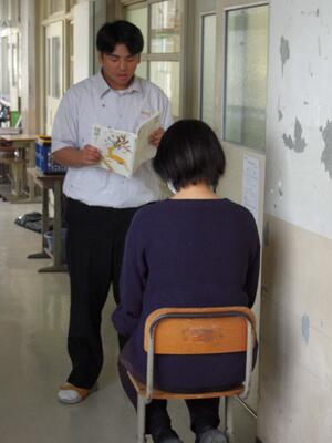 自分の席で暗記し、廊下で待っている先生の前で、一人一人言っています。これが暗記の文章です。