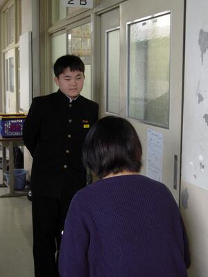 今日は、1年生が福祉について学ぶために、事前学習をしました。講師は、町社会福祉協議会から平野様、井下様をお迎えしました。