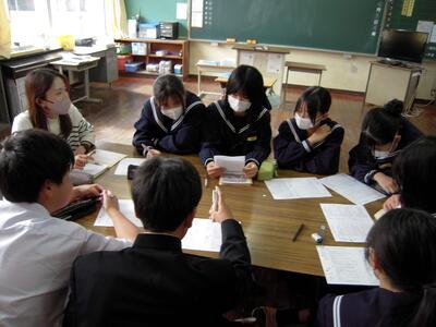 楽しい修学旅行にするために、修学旅行実行委員会の皆さんが事前準備をしています。お昼休み時間にもかかわらず、真剣に話し合っています。