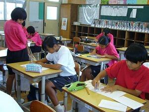 部活動の子ども達、部活動が始まる前、勉強に頑張っています。