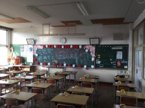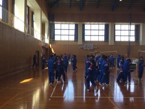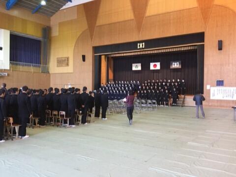 卒業式の朝のようすです。在校生が朝から歌の練習等をがんばってくれています。いい式になりそうです。