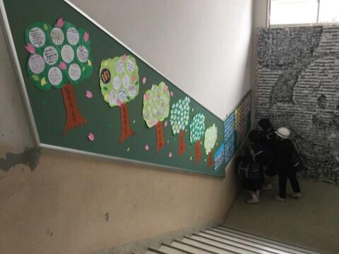 卒業式に向けて、3年生に先生方や後輩たちからメッセージが寄せられました。写真も掲示され、懐かしそうに見ている3年生たちの姿が見られました。懐かしさ半分、さびしさ半分…です。