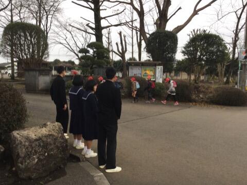 今朝の小中合同あいさつ運動のようすです。今朝は3年生の旧執行部と一緒に川南小学校に行ってきました。川南小の子どもたちはすごく大きな声であいさつしていて、中学生が元気をもらっていました。最後に交通指導員の方と一緒に記念撮影をさせてもらいました。川南小の子どもたちにもらった元気をもとに今日もがんばります。