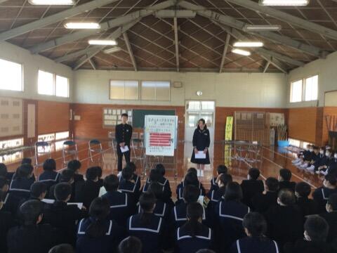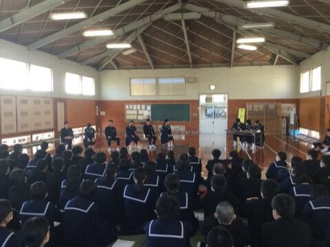 本日行われた離任式のようすです。4名の先生方が離任され、とてもさびしくなりました。笑顔あり、涙ありの国中らしいステキな式でした。国中を離任される先生方の今後のご多幸をお祈りしています。今までありがとうございました。