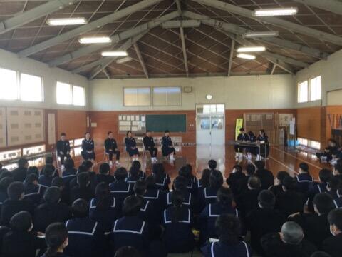 本日6校時、先輩の声を聞く会を行っています。これは前半の入試の受け方や勉強法、面接の内容などを説明してくれました。先輩たちの生の声を聞く良い機会となっています。