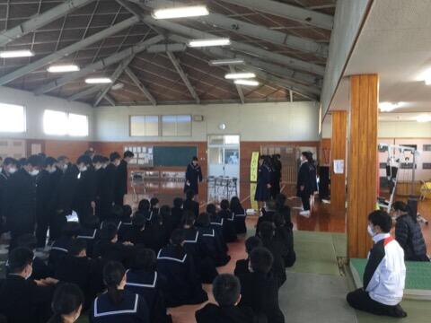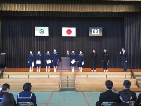 代表生徒が修了証を授与され、今年度のがんばりの評価とまとめ、そして次年度への気持ちづくりができました。