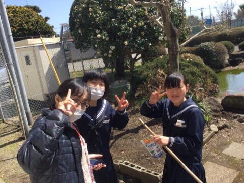 毎日、校内の池にいる鯉の餌やりをしてくれていた3年生です。この仕事も後輩に譲ります。