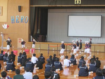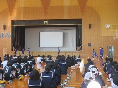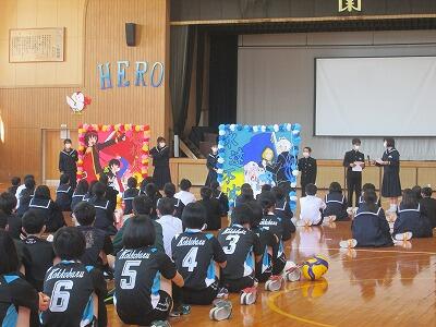 5,6校時に歓迎行事が行われ、生徒会の紹介・説明と部活動紹介がありました。新入生は生徒会の様子に大人の社会の雰囲気を感じるとともに、部活動紹介の説明やプレーに目を輝かせどの部に入ろうかと胸を躍らせているようでした。