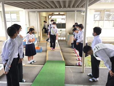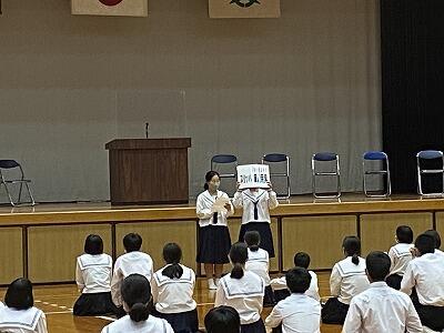 通山小学校での活動の様子です。始めの会です。↓