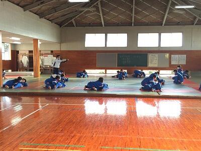 1年の保体です。柔道の前回り受け身の練習をしています。↓