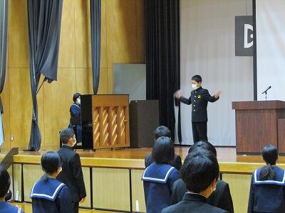 式では生徒代表4名が2学期の反省を発表してくれました。↓