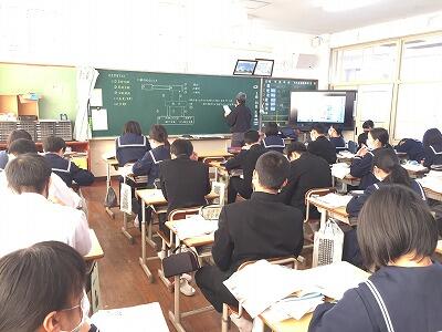 本日は、1・2年生は水曜日の5時間授業で、帰りの会終了15:05です。本日より2月3日(木)まで、新型コロナウイルス感染症拡大防止のため部活動終了は中止となります。5校時は教育相談があります。3年生は私立高校入試があり、入試に行かない生徒は給食後下校となります。