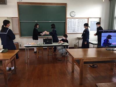 被服室から配信しました。前校給食委員長、副委員長の進行です。↓