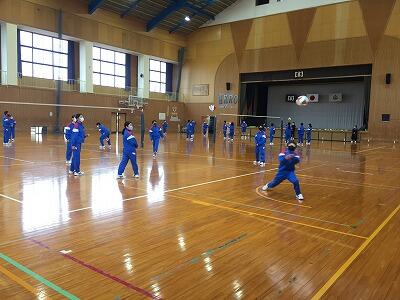 1年の保体です。バレーボールで円陣を組んでパスをしています。↓