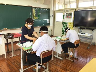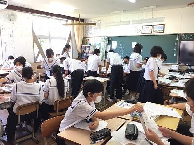 全校集会後は各学級で夏休み課題の提出・点検がありました。
