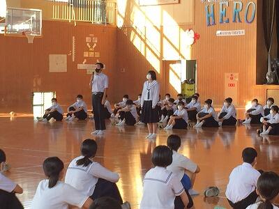 昨日の生徒集会の様子です。リモートで行われ、生徒会選挙について説明がありました。