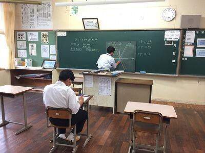 2年生の数学です。少人数指導で一次関数の「傾き」や「切片」について学んでいます。↓