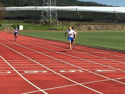 本日行われた西都児湯地区中学校秋季体育大会陸上競技の様子です。白の体操服に青のハーフパンツが本校生徒です。
