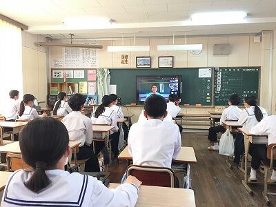 昨日の生徒会役員選挙の様子です。被服室からリモートで行いました。