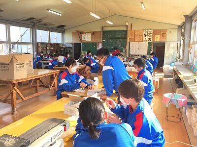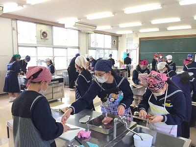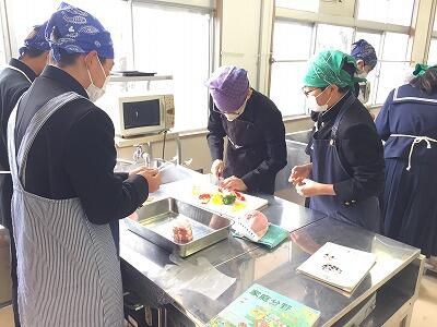 2年生の家庭科です。調理実習で生姜焼きを作っています。↓
