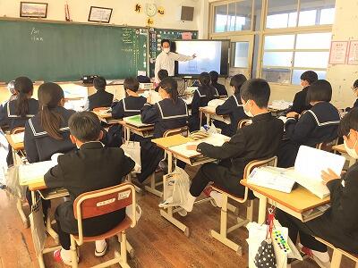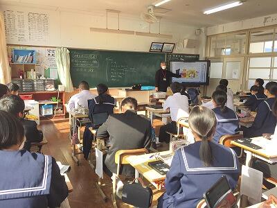 生徒の「2学期を振り返って」の発表の様子です。↓