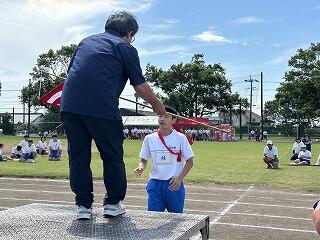 「一般走」1年男子150メートルの部で、新記録【24秒44】が誕生しました。新記録を樹立したのは、1年生の疋田崇真(ひきだ そうま)さんです。本校の種目記録一覧に、新たな記録が更新され、本人も満面の笑みでした。おめでとうございました。
