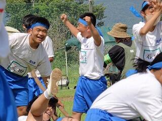 「Never give up 皆でつなぐ 勝利のバトン」の大会スローガンのもと、体育大会実行委員長、そして団長・副団長・リーダーを中心に、団が統率され、皆が全力で競技や応援に取り組み、思い出深い行事となりました。