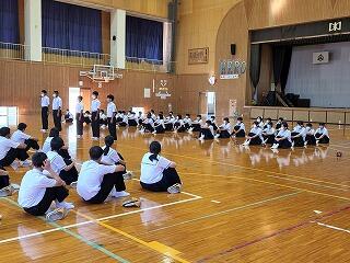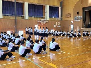 9月28日(木)午後、西都児湯地区中学校秋季体育大会に向けて、「選手激励式」が行われました。各部は、体育館フロア中央に整列し、各部を代表してキャプテンが、大会にかける意気込みや抱負を熱く語ってくれました。選手宣誓を、女子バレーボール部キャプテン香川叶空さん、男子ソフトテニス部キャプテン溝口立醒くんの2名が務めました。気力に満ち、実に堂々たる宣誓でした。