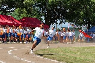 「国光原中 第78回 体育大会」は、9月8日(日)快晴の中、開催されました。大会スローガン「Winning Smile 皆でつかむ 勝利の笑顔」のもと、赤団、青団とも団長・副団長・リーダーを中心に一致団結しました。今年の体育大会(半日開催)の競技種目は、生徒会執行部を中心に生徒の意見をもとに決定しました。各学年の「学級対抗リレー」及び「学年団技」、その他「全校綱引」、「団対抗リレー」、そして「各団の特設応援」の内容で行いました。生徒一人一人が競技や役員、応援に全力を尽くし、「打てば響く国中生」「限界突破の国中生」「仲間を讃え合う国中生」を具現化してくれ、実り多い体育大会となりました。激励、温かな声援をいただき誠にありがとうございました。