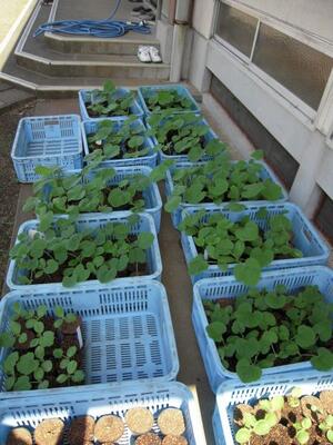 県立農業大学校の先生方のご指導をいただきながら、カボチャの種まきをしました。毎日、愛情を込めて水やりを続けています。種から芽が出て、こんなに大きくなりました。もうしばらくして、県立農業大学校の農場に移植します。これからが、本番です。
